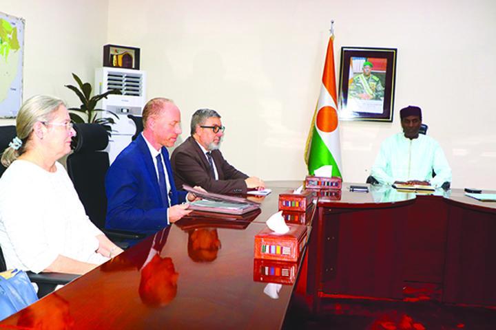 Africa-Press – Niger. Le Premier ministre, ministre de l’Économie et des Finances, M. Ali Mahaman Lamine Zeine, a reçu le jeudi 20 novembre 2025, à son cabinet, une délégation suisse conduite par le Chef de la coopération suisse au Niger, M. Claudio Tognola. La délégation comprenait Carol Mottet, conseillère principale, Division Paix et droits de l’homme, Département fédéral des affaires étrangères, et Pascal Holliger, conseiller principal, Division Paix et droits de l’homme, Département fédéral des affaires étrangères.