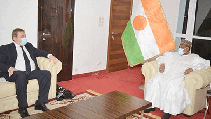 Africa-Press – Niger. Le Président de l’Assemblée nationale, SE. Seini Oumarou a accordé hier en fin de matinée deux audiences à son cabinet. Il s’agit successivement de l’ambassadeur de la Fédération de Russie au Niger avec résidence à Bamako, SE. Igor Gromyko et une délégation de l’Association des anciens parlementaires du Niger conduite par Elhadj Kadri Moutari.