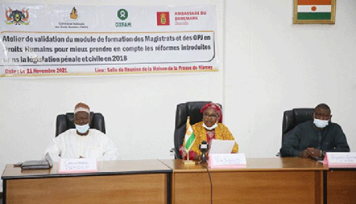 Africa-Press – Niger. La Vice-présidente de la Commission Nationale des Droits Humains (CNDH), Mme Kako Fatima a présidé, hier matin, l’ouverture des travaux de l’atelier de validation du module de formation des Magistrats et des OPJ en droits humains pour mieux prendre en compte les réformes introduites dans la législation pénale et civile en 2018. La cérémonie s’est déroulée en présence des commissaires nationaux des droits de l’Homme, des magistrats, des représentants des organisations de la société Civile et de plusieurs invités.