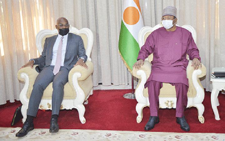 Africa-Press – Niger. Le Premier ministre, Chef du gouvernement, M. Ouhoumoudou Mahamadou a reçu hier matin le Directeur Afrique de l’Agence Française de Développement (AFD), M. Christian Yoka. L’audience s’est déroulée en présence de l’Ambassadeur de France au Niger, SE Alexandre Garcia. A sa sortie d’audience, le Directeur Afrique de l’Agence Française de Développement, a déclaré avoir parlé avec le Chef du gouvernement des questions relatives à la coopération entre l’AFD et l’Etat du Niger. Il a rappelé que l’institution intervient au Niger dans plusieurs secteurs notamment l’éducation, l’énergie, la sécurité alimentaire, au bénéfice des populations. Cette rencontre avec le Premier ministre a également permis de recueillir les priorités du gouvernement et de voir les possibilités pour l’AFD de poursuivre ses actions en faveur du pays a indiqué, M. Christian Yako.