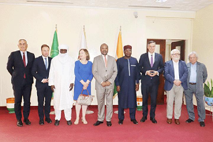 Africa-Press – Niger. Le Ministre d’Etat, ministre des Affaires Etrangères et de la Coopération, M. Hassoumi Massoudou, a rencontré, dans l’après-midi d’hier, mardi 1er novembre 2022, une délégation des membres du Parlement européen, conduite par la présidente de la Sous-commission Défense et Sécurité du parlement européen, Mme Nathalie Loiseau. La rencontre a eu lieu en présence notamment du ministre de la Défense Nationale, M. Alkassoum Indattou, de celui de l’Intérieur et de la Décentralisation, M. Hamadou Adamou Souley et des responsables des Forces et de Défenses de notre pays.