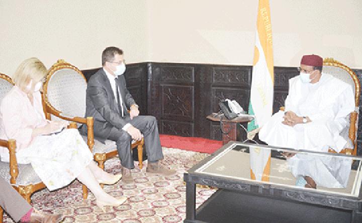 M. Janez Lenarčič, Commissaire de l’Union européenne chargé de la gestion des crises en mission au Niger. A sa sortie d’audience, M. Janez Lenarčič a indiqué avoir annoncé au Président de la République une augmentation considérable de l’aide humanitaire fournie par l’Union Européenne au Niger pour cette année au regard de la crise alimentaire qui s’annonce. Le Commissaire européen a aussi déclaré que le Niger est un partenaire stratégique de l’Union Européenne. «C’est en effet, a-t-il dit, un pays qui essaie de faire face à beaucoup de défis dans une région tourmentée». Il s’agit des défis sécuritaires, alimentaires et humanitaires. «J’ai assuré le Président de la République que l’Union européenne restera un partenaire sûr du Niger», a conclu M. Janez Lenarčič.