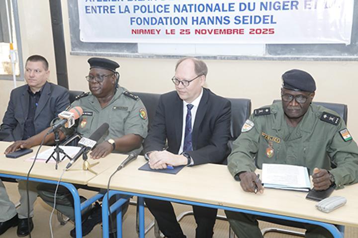 Africa-Press – Niger. Le Commissaire Général de Police Aboubacar Issaka Oumarou, directeur de l’Office Central de Répression du Trafic Illicite des Stupéfiants (OCRTIS), a présidé, le mardi 25 novembre 2025 à Niamey, l’ouverture des travaux de l’atelier de présentation du bilan de dix ans de partenariat entre la Police Nationale du Niger et la Fondation Hanns Seidel. La cérémonie s’est déroulée en présence de l’ambassadeur de la République Fédérale d’Allemagne au Niger, des directeurs nationaux et directeurs des services rattachés de la Police Nationale ainsi que de plusieurs invités.