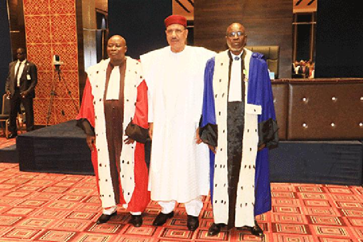 Africa-Press – Niger. Le Président de la République, Chef de l’Etat, Président du Conseil Supérieur de la Magistrature, SE. Mohamed Bazoum, a présidé le vendredi 28 octobre 2022, dans la matinée, au Centre International des Conférences Mahatma Gandhi de Niamey, l’audience publique solennelle portant prestation de serment du premier président de la Cour de Cassation, et du premier président du Conseil d’Etat. C’était en présence du ministre de la Justice, Garde des Sceaux, des présidents des institutions de la République, des membres du Gouvernement et du personnel des deux institutions judiciaires, des familles et proches des deux récipiendaires.