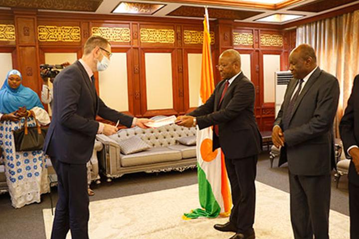 Africa-Press – Niger. Le ministre d’Etat, Ministre des Affaires Etrangères et de la Coopération, M. Hassoumi Massoudou, a reçu hier matin, les lettres d’accréditation de M. Thierry Balloy, en qualité de Représentant Régional pour l’Afrique de l’Ouest et du Centre, Chef de Délégation de la Fédération Internationale des sociétés de la Croix Rouge et du Croissant Rouge auprès de la République du Niger Résident à Niamey.