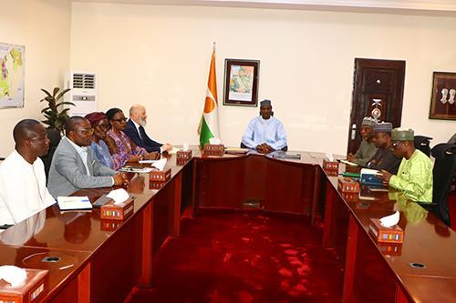 Le ministre des Affaires Etrangères, de la Coopération et des Nigériens à l’Extérieur, M. Bakary Yaou Sangaré, assurant l’intérim du ministre en charge de l’Agriculture, a présidé, lundi 26 janvier 2026, dans la salle des Banquets de la primature, une réunion de travail avec la délégation du Programme Alimentaire Mondial conduite par son sous-directeur exécutif chargé des opérations, M. Matthew Hollingworth. L’objectif de cette rencontre est de faire les points des réalisations effectuées dans le cadre de cette coopération, mais surtout d’insister sur la priorité que le Niger accorde à son Programme de Résilience mis en œuvre depuis les événements du 26 juillet 2023. La délégation du PAM a rencontré, après la réunion, le Premier ministre Ali Mahaman Lamine Zeine.