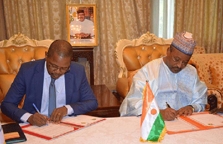 Africa-Press – Niger. Le ministre d’Etat, ministre des affaires étrangères et de la coopération, SE Hassoumi Massoudou, et le Secrétaire Exécutif du CIP G5-Sahel, M. Karamoko Jean Marie Traoré, ont procédé hier en fin d’après-midi à la signature de l’accord établissant à Niamey au Niger, le siège régional permanent du Comité Interparlementaire (CIP) G5 Sahel. Par cette signature, l’Etat garantit l’indépendance de l’institution sous régionale de coopération et de ses fonctionnaires, consolide plusieurs droits reconnus aux fonctionnaires des institutions internationales et leur personnel local.