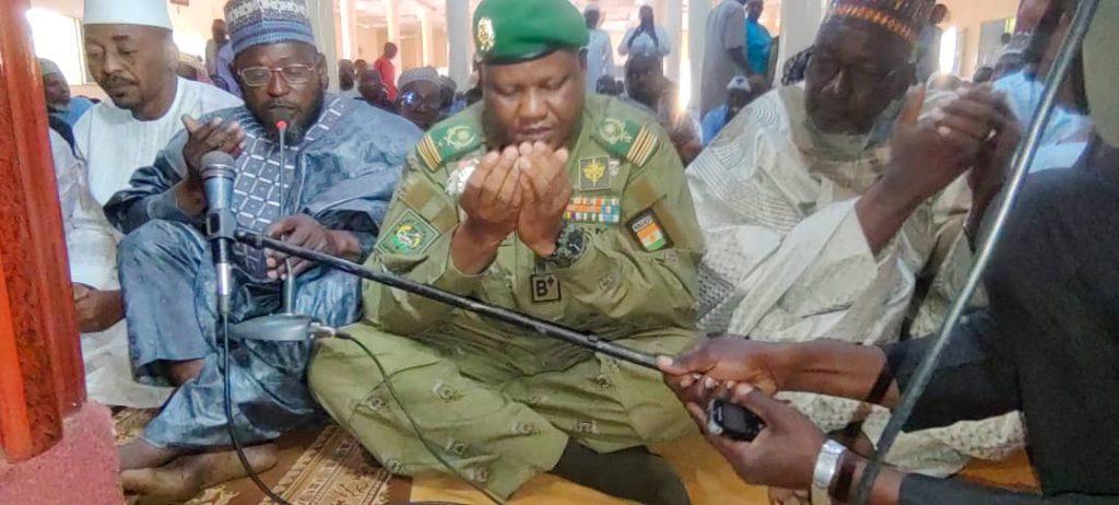 Après l’accomplissement des deux rakaâts de la prière de vendredi suivie de qunut, l’imam de la mosquée a prononcé d’importantes invocations en faveur de la paix, de la stabilité au Niger et pour la protection des Forces de Défense et de Sécurité engagées sur les théâtres d’opération.