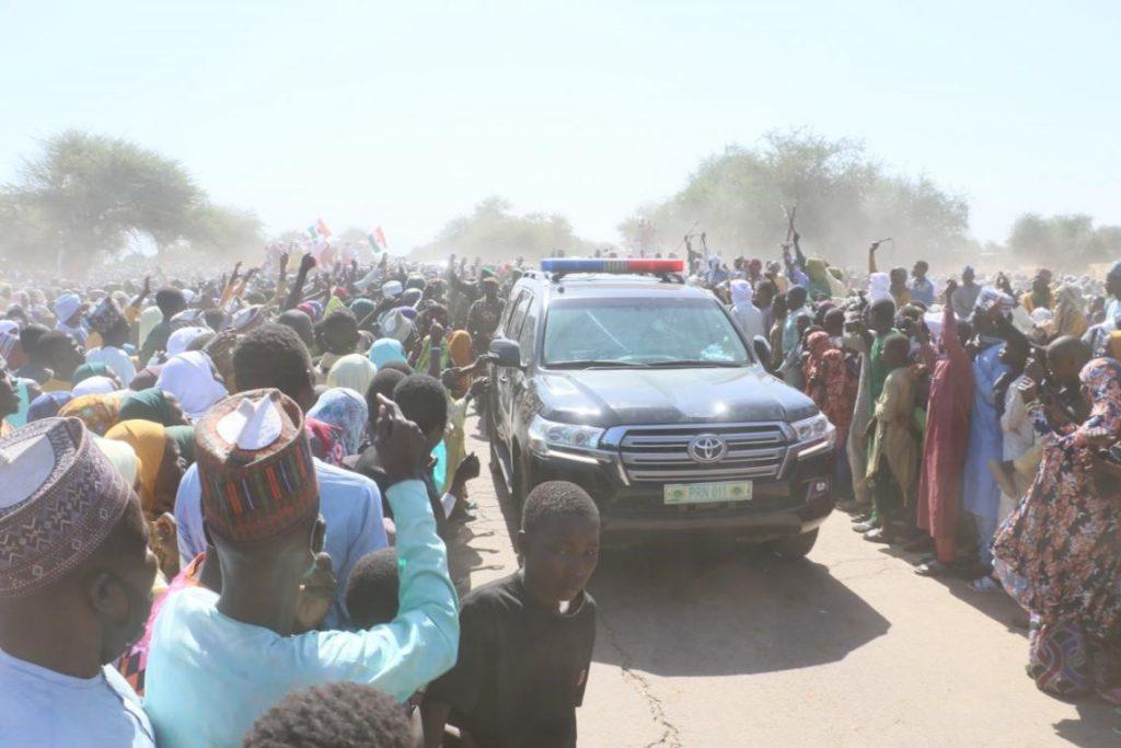 Le Président de la République, qui a quitté Goudoumaria aux environs de 9 heures, a pris tout son temps s’arrêtant sans pression aucune dans les localités traversées pour avec ses compatriotes sortis l’accueillir.