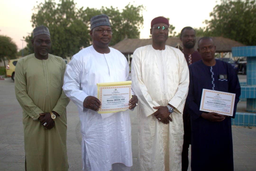 Il a, en effet, décerné deux témoignages officiels de satisfaction à M. Soumana Saadou, Chef d’exploitation sortant de la Nigérienne des Eaux (NDE), et M. Moussa Arzika Adde, Directeur Régional sortant des Impôts.