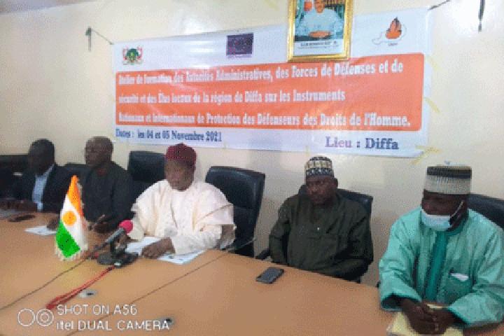 Africa-Press – Niger. La Commission nationale des droits humains (CNDH) a organisé hier à Diffa une session de formation sur les instruments nationaux et internationaux assurant la protection des défenseurs des droits de l’homme. La cérémonie d’ouverture des travaux s’est déroulée dans la salle de réunion du Conseil Régional sous la présidence du Secrétaire Général du Gouvernorat, en présence du 2ème Vice-président du Conseil Régional, des magistrats, des directeurs centraux de la CNDH, des secrétaires généraux de Préfecture, des élus locaux.