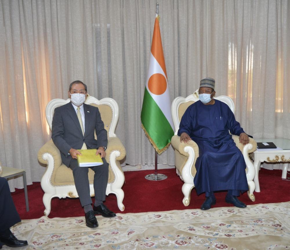 Africa-Press – Niger. Le Premier Ministre du Niger, M. Ouhoumoudou Mahamadou a accordé, ce mardi 26 octobre 2021, une audience à l’Ambassadeur du Japon au Niger avec Résidence à Abidjan, M. KURAMITSU HIDEAKI.
