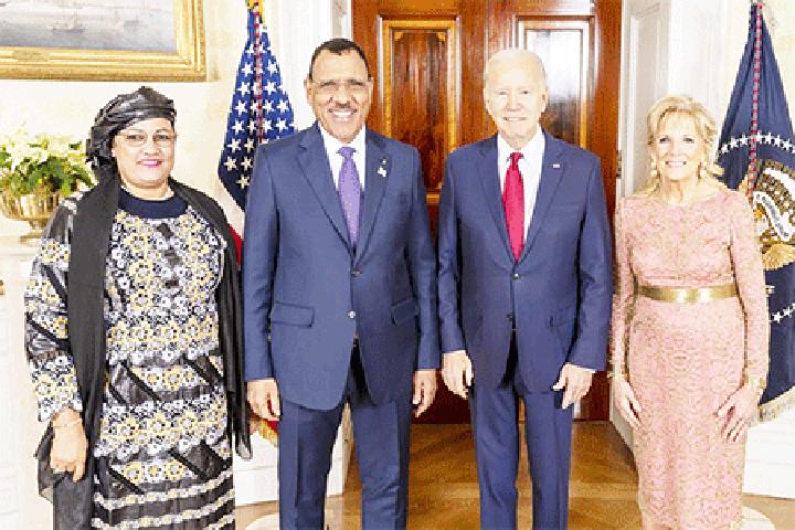 Africa-Press – Niger. A l’occasion de L’U.S-AFRICA Summit, le Président de la République, S.E.M Mohamed Bazoum, et la Première Dame Mme Khadija Bazoum, ont pris part, hier jeudi 14 décembre 2022, au Dîner officiel des Chefs d’Etat et de Gouvernement à la Maison Blanche. Au cours de ce dîner, le Président Macky Sall, Président en exercice de l’Union Africaine et le Président Joe Biden ont prononcé chacun une allocution.
