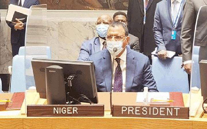Africa-Press – Niger. Aujourd’hui, vendredi 31 décembre 2021, prend fin le mandat du Niger, en tant que membre non permanent du Conseil de Sécurité des Nations Unies. C’est un mandat de deux (2) ans qui se termine avec la présidence du Conseil de Sécurité exercée par le Niger durant ce mois de décembre. Pour la 2ème fois de son histoire, le Niger a siégé, en tant que membre non permanent, au Conseil de Sécurité de l’ONU. Le Niger a, avec fierté et notoriété, représenté l’Afrique et son image a marqué la communauté internationale. En effet, tout au long de son mandat la voix de notre pays a été audible s’agissant des questions concernant l’Afrique en général et le Sahel en particulier, un Sahel en proie à l’insécurité et au terrorisme. La voix du Niger est, également, écoutée avec la plus grande attention sur les questions brulantes internationales.