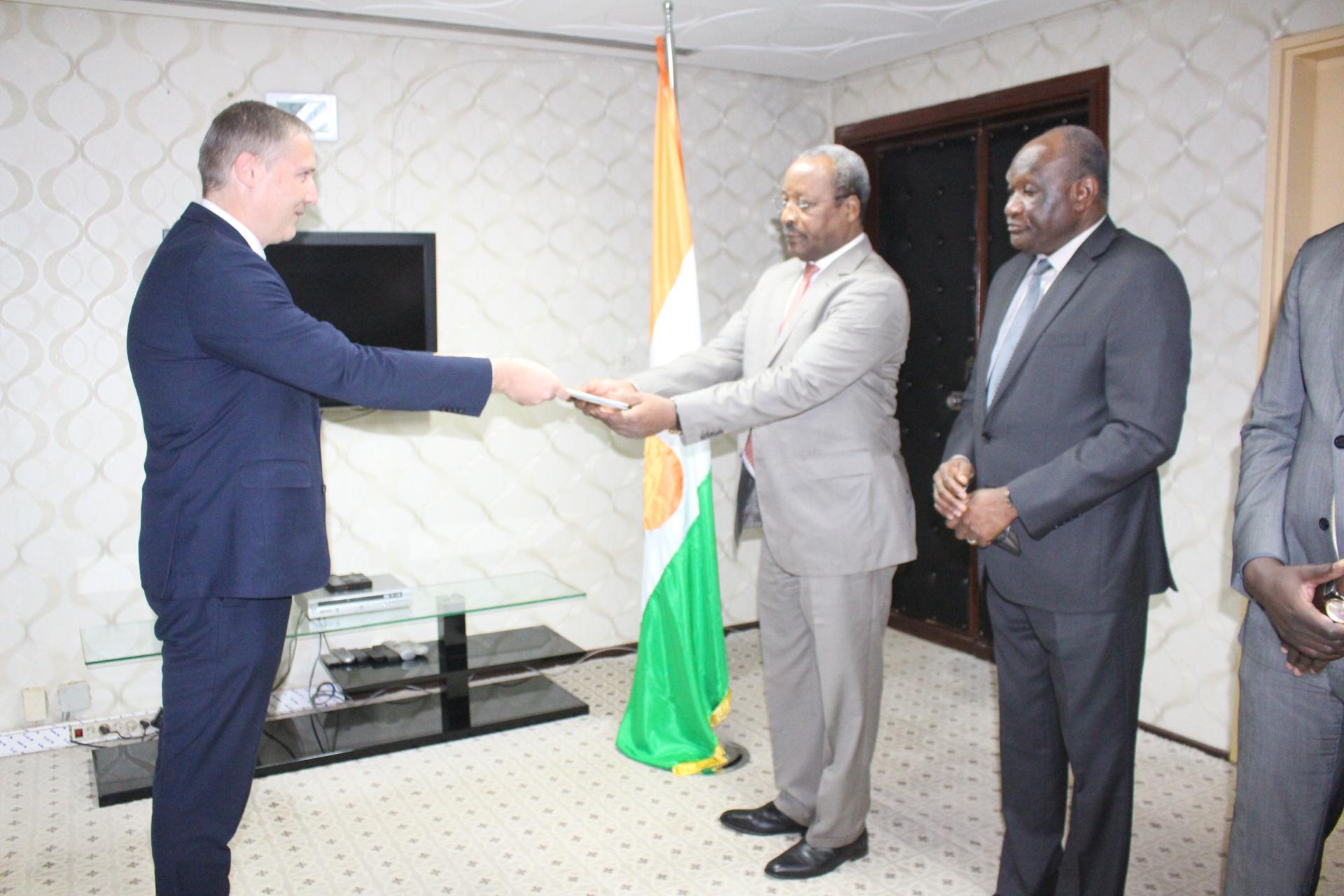 Africa-Press – Niger. Le Ministre d’Etat, des Affaires Etrangères et de la Coopération Hassoumi Massoudou a reçu ce mardi 1er novembre 2022 à son cabinet, la copie figurée de la lettre de créance du nouvel ambassadeur de la République Hellénique auprès du Niger Efthymios-Georges Costopoulos.