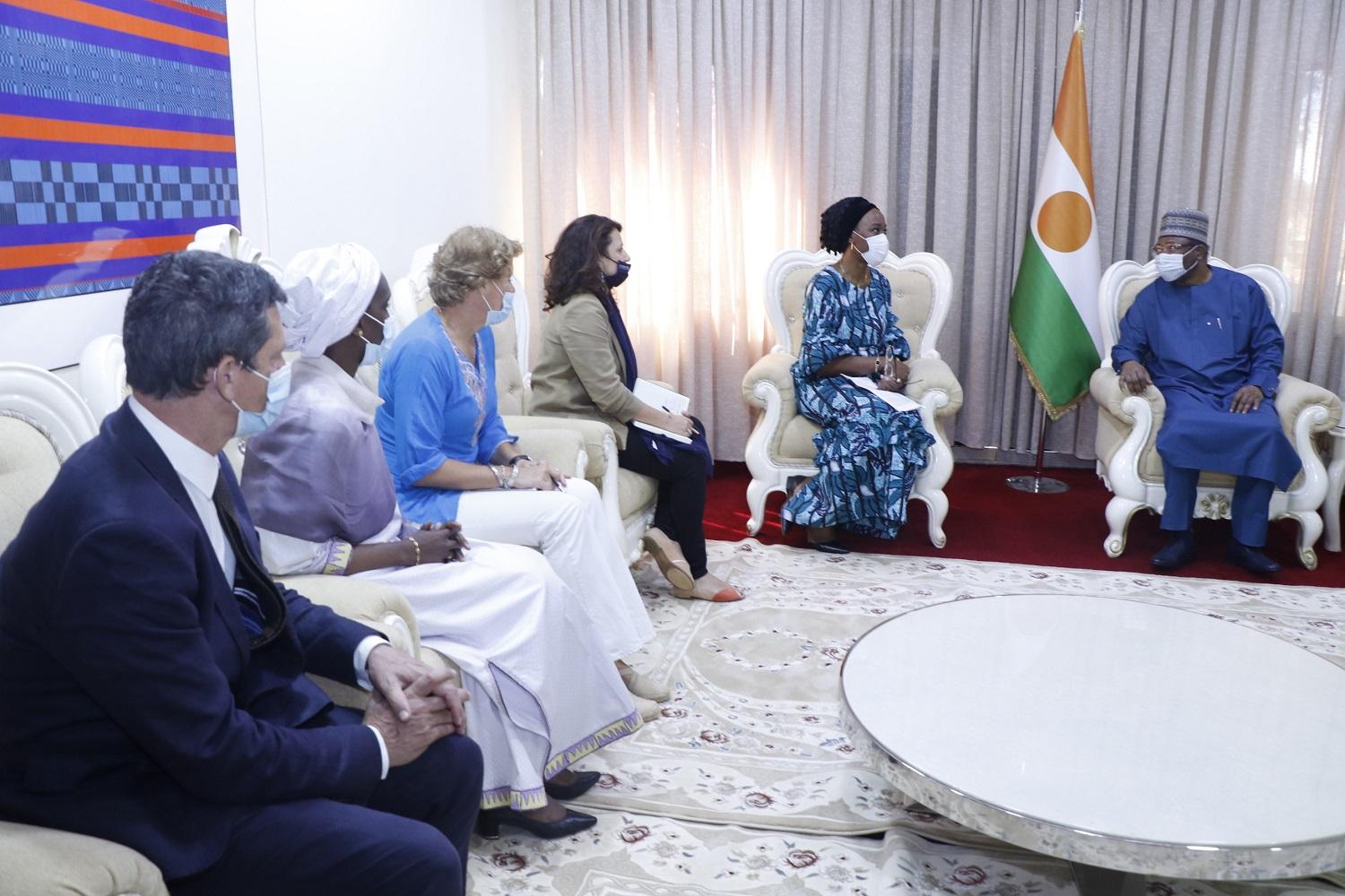 Africa-Press – Niger. Le premier ministre Ouhoumoudou Mahamadou a reçu, en début de matinée de ce vendredi 29 octobre 2021 à son cabinet, la directrice générale adjointe chargée des opérations de l’Organisation Internationale pour la Migration (OIM), Mme. Ugochi Florence Daniels.