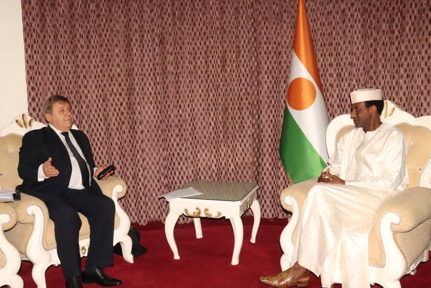 Africa-Press – Niger. Le Premier ministre chef du gouvernement de la Transition, M. Ali Mahaman Lamine Zeine, a reçu ce lundi 02 octobre 2023, à son cabinet M. Igôr Gromyko, ambassadeur de la Fédération de Russie auprès du Niger avec résidence à Bamako au Mali.
