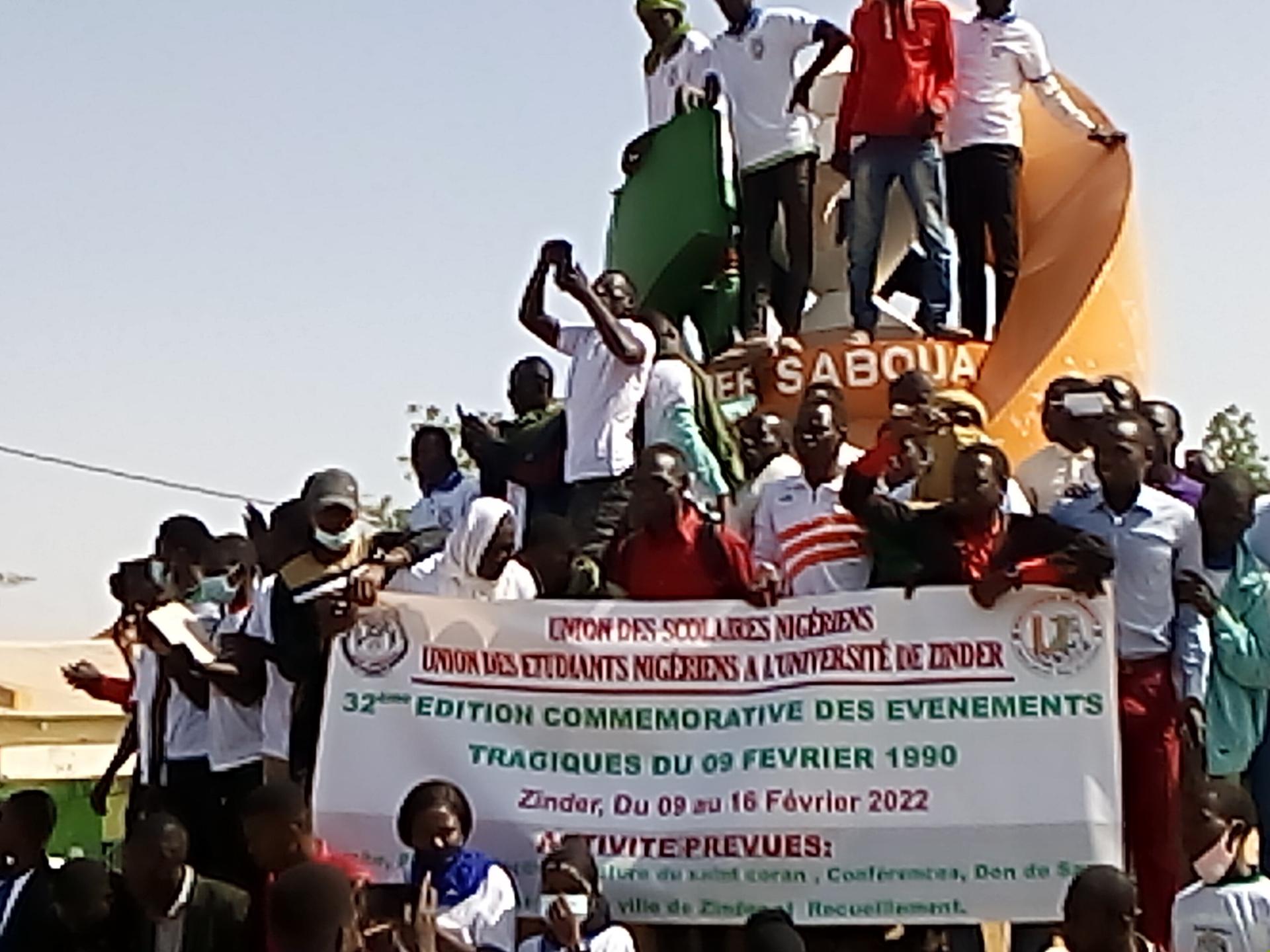 Africa-Press – Niger. .Plusieurs centaines d’étudiants et scolaires de Zinder ont organisé, ce mercredi 09 février 2022, une marche pacifique de l’Université à la place des martyrs, située à environ 5km du Centre- ville, pour commémorer le 32ème anniversaire des événements tragiques du 9 février 1990, a constaté sur place le correspondant régional de l’ANP dans la région.