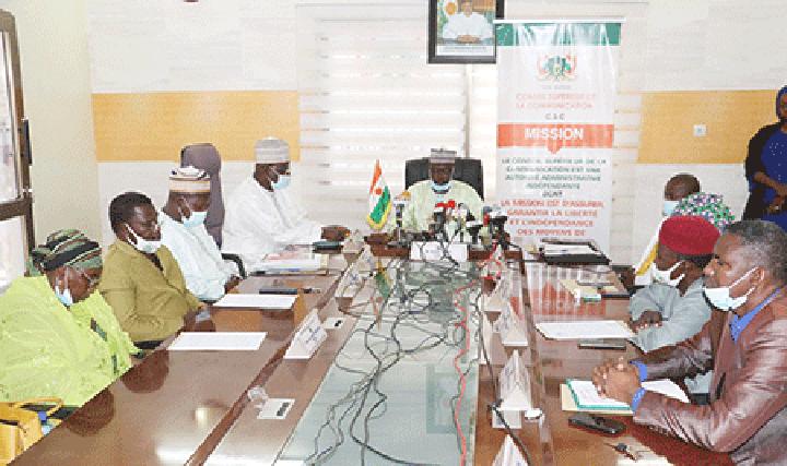 Africa-Press – Niger. Le président du Conseil Supérieur de la Communication (CSC), Dr Kabir Sani a présidé hier matin à Niamey la réunion de la session de ladite institution du mois d’octobre 2021. Les points inscrits à l’ordre du jour sont :Examen et adoption du procès-verbal de la session de septembre 2021, informations sur le CSC, examen et adoption des travaux de la commission éthique, déontologie et carte de presse, examen et adoption des travaux de la commission suivie des cahiers de charge, accès équitable et publicité, examen et adoption du projet de délibération mettant en place un groupe de travail chargé de la révision du projet de loi sur la presse électronique et du projet de loi sur le statut et financement des radios et télévisions associatives ou communautaires et questions diverses.