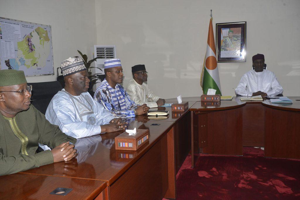 Africa-Press – Niger. En marge de la 3è réunion des ministres du Commerce et de l’Industrie de l’Alliance des États du Sahel (AES), le Premier ministre, ministre de l’Économie et des Finances, M. Ali Mahaman Lamine Zeine, a accordé hier en fin d’après-midi une audience aux ministres en charge du secteur. La délégation était composée de MM. Serge Gnaniodem Poda du Burkina Faso, Moussa Alassane Diallo du Mali et Abdoulaye Seydou du Niger.