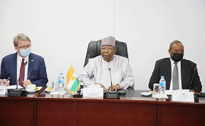 Africa-Press – Niger. Le Premier ministre Ouhoumoudou Mahamadou a rencontré hier en fin d’après-midi à son cabinet, les partenaires humanitaires du Niger pour leur présenter le document du plan d’urgence qui couvre la période allant de novembre 2021 à mars 2022. Ce document élaboré par les services techniques du Gouvernement à la suite de l’évaluation de la récente campagne agricole décevante, vise à mobiliser l’ensemble des acteurs humanitaires présents au Niger et au-delà autour de ce plan de riposte en faveur des populations. A l’issue de cette réunion, les partenaires humanitaires ont pris des engagements pour soutenir les Nigériens dans cette nouvelle épreuve qui les préoccupe.