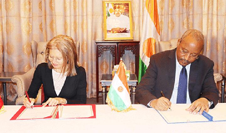 Africa-Press – Niger. Le ministre d’Etat, ministre des Affaires Etrangères et de la coopération, M. Hassoumi Massoudou et l’ambassadeur d’Italie au Niger, SE. Emilia Gatto ont procédé hier soir, à la signature des deux accords à Niamey. Il s’agit du Projet d’électrification rurale photovoltaïque au Niger (Départements de Keita et Illéla) doté d’une subvention de 3 millions d’Euro soit 1.967.871.000 FCFA et du Projet d’Aménagement d’une retenue d’eau pour la régulation de la SIRBA doté d’un financement de 2.850.797 d’Euro, soit 1.867.272.035 FCFA.