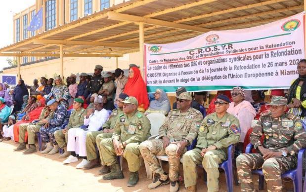 Africa-Press – Niger. L’Administrateur Délégué de la Ville de Niamey le Col. Boubacar Soumana Garanké a assisté, ce jeudi 26 mars 2026, au sit-in organisé par le cadre de réflexion des Organisations de la Société Civile et des Organisations Syndicales devant le siège de l’Union Européenne à Niamey.