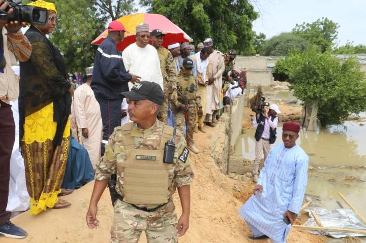 Quelques instants après, la délégation gouvernementale s’est rendue au village de Kangouri situé à une dizaine de kilomètres de la ville de Diffa sur la route de N’Guigmi. Là aussi, les eaux se font de plus en plus menaçantes sur ce village pour l’instant protégé par une digue conçue dans l’urgence. Juste à la sortie de ce village les eaux ont occupé la chaussée obligeant les usagers qui veulent se rendre à N’Guigmi à faire un long détour de plus de 15km.