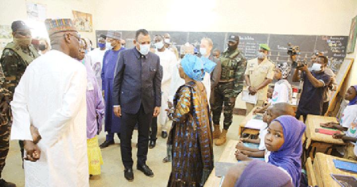 Africa-Press – Niger. Le Président de la République, Chef de l’État, SEM Mohamed Bazoum, a effectué, hier matin une visite, à l’Ecole Normale d’Instituteurs (ENI) Saadou Galadima de Niamey pour encourager les encadreurs, échanger avec les acteurs sur la mise en œuvre des réformes qu’il a voulues pour ce secteur et surtout évaluer les leçons à tirer à ce sujet. A la fin de sa visite, le Chef de l’État a fait un plaidoyer en faveur d’un accompagnement plus conséquent aux encadreurs et élèves-maîtres afin d’attirer et maintenir les plus qualifiés d’entre eux dans le système éducatif national et public. Il a également annoncé la création prochaine d’un lycée d’excellence à Tessaoua, dans la région de Maradi. L’objectif visé par le Président de la République, c’est de doter le pays de cadres compétents, surtout scientifiques, dans un futur proche.