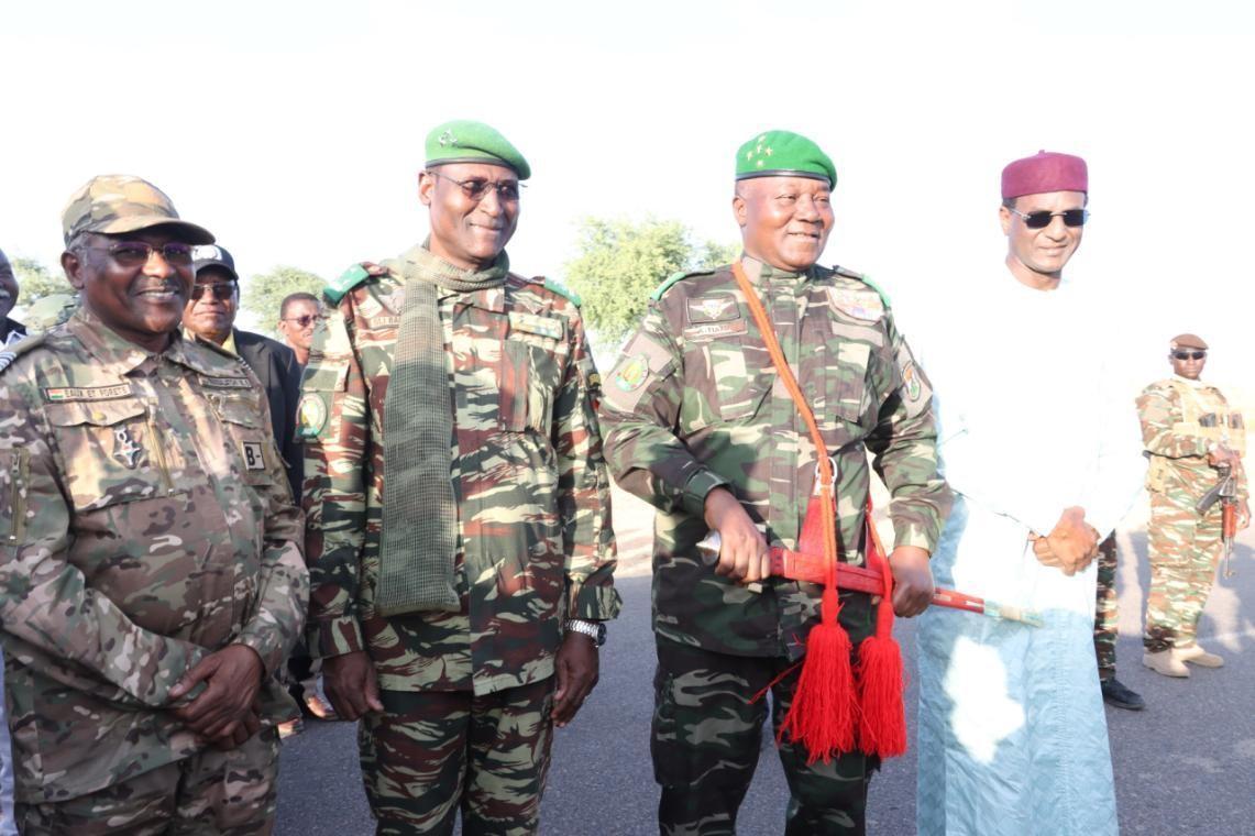 Peu avant les honneurs militaires rendus par un détachement de la Garde Nationale du Niger, le Président de la République a reçu, des mains du gouverneur de la région, un sabre traditionnel, symbole de bienveillance et d’hospitalité dans le Manga.