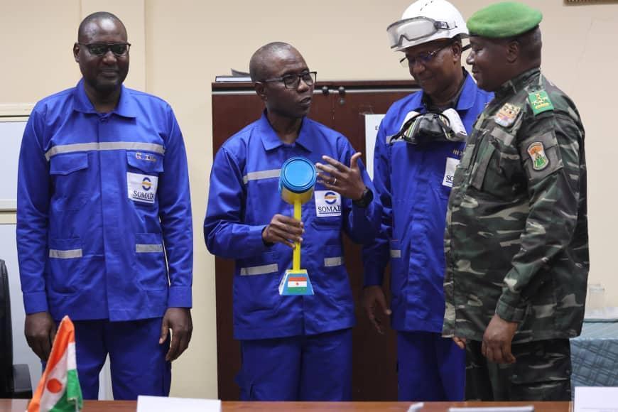 Africa-Press – Niger. Le Président de la République, Chef de l’Etat, le Général d’Armée Abdourahamane Tiani, qui séjourne à Arlit dans le cadre de sa visite de proximité et de contact avec les populations, s’est rendu sur le site de la Société des Mines de l’Air (Somair). Une société désormais appartenant à l’Etat du Niger après sa nationalisation intervenue il y a plusieurs mois.