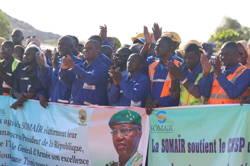 Au cours de cette visite sur le site de la Somair, le Président Tiani s’est intéressé particulièrement aux conditions de vie et de travail des agents et la continuité de la production où l’Etat prendra toutes ses responsabilités pour permettre à la Somair, propriété de l’Etat de fonctionner normalement. « Tous les moyens seront mis à disposition », a martelé le Chef de l’Etat tout en encourageant le personnel à poursuivre les efforts et gagner ce pari.