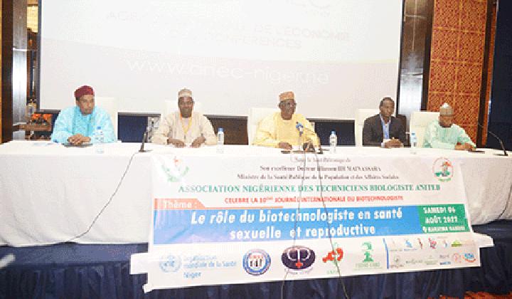 Africa-Press – Niger. A l’instar de la Communauté Internationale, le Niger a célébré la 10ème édition de la Journée Internationale du biotechnologiste. Le thème retenu cette année est « Le rôle du biotechnologiste en santé sexuelle et reproductive». A cette occasion, l’Association Nigérienne des Techniciens Biologistes (ANITEB) a organisé le samedi 6 août à Niamey, une importante rencontre d’échanges entre les techniciens biologistes sur plusieurs thématiques. C’est le Secrétaire général adjoint du Ministère de la Santé Publique, de la Population et des Affaires Sociales du Niger, M. Sabo Hassan Adamou qui a présidé l’ouverture des travaux de cette rencontre. L’ouverture des travaux a été marquée par la présence de plusieurs personnalités dont le ministre de l’Emploi et de la Protection Sociale.