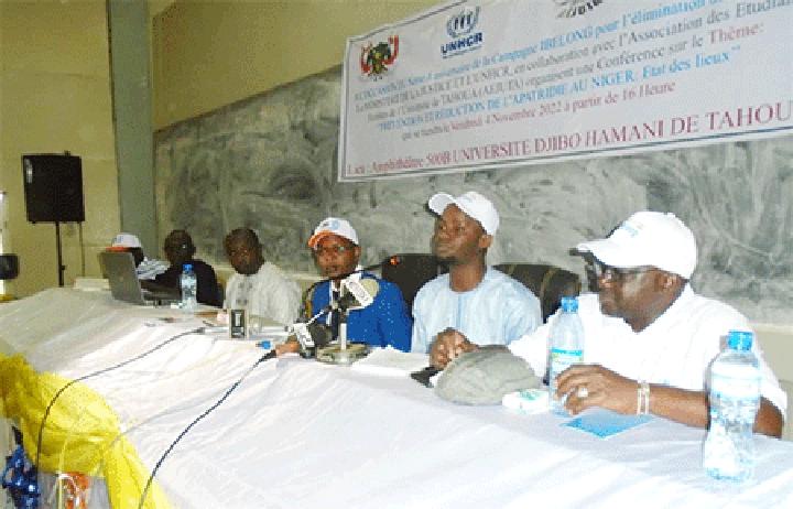Africa-Press – Niger. Le Ministère de la Justice, Garde des Sceaux et le Haut-Commissariat des Nations Unies pour les réfugiés (UNCHR) en collaboration avec l’Association des Etudiants Juristes de l’Université de Tahoua (AEJUTA), ont organisé, le 04 novembre 2022, à Tahoua, une conférence-débat sur le thème «Prévention et réduction de l’apatridie au Niger : Etats des lieux». Cette conférence s’inscrit dans le cadre de la célébration du 8ème anniversaire de la campagne IBELONG pour l’élimination de l’apatridie