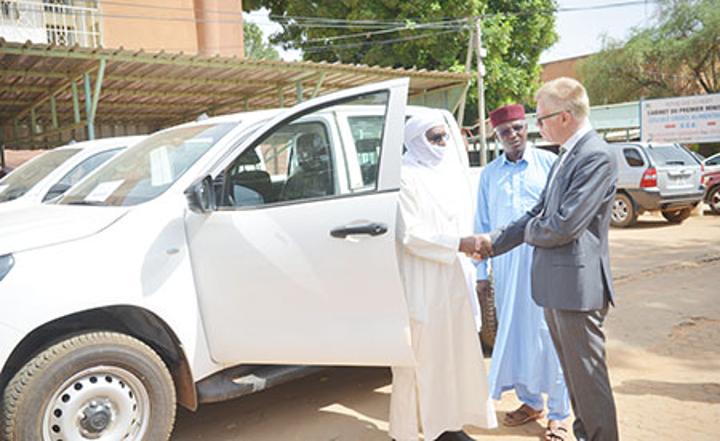 rapidement manifesté sa volonté d’accompagner le Niger en mobilisant plus de 500.000 Euros dont la grande partie sera dédiée à la région de Tillabéri. «La remise des véhicules s’inscrit dans le même cadre du renforcement de capacité institutionnelle du projet Appui au DNPGCA», a déclaré M. Andreas Konig. Il a ensuite ajouté que cet équipement contribuera à renforcer les capacités pour intervenir sur le terrain auprès des populations afin de relever le défi en matière de sécurité alimentaire au Niger.
