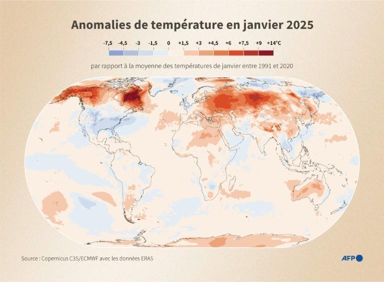 2024 a été la première année calendaire au-dessus de ce niveau de réchauffement, avec une température moyenne à la surface de la planète supérieure de 1,55°C à la moyenne de la période 1850-1900, selon une analyse de l’Organisation météorologique mondiale (OMM), se basant sur six grandes bases de données internationales.
