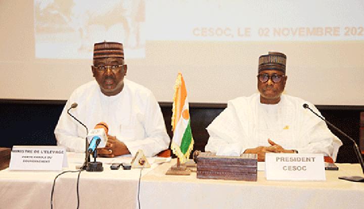 Africa-Press – Niger. Dans le cadre des travaux de la 2ème session ordinaire du Conseil Economique Social et Culturel (CESOC), le ministre de l’élevage, porte-parole du gouvernement, M. Tidjani Idrissa Abdoul Kadri a fait le 2 novembre dernier une communication devant les conseillers sur le thème « modernisation de l’élevage, pour une meilleure intégration du Niger dans la ZLECAf : défis, enjeux et perspectives ». Ce faisant, après avoir présenté les atouts, opportunités et défis de l’élevage nigérien, le ministre a décliné brièvement le plan quinquennal ambitieux (chiffré à hauteur de 145 milliards FCFA d’investissement) du gouvernement, qui commencera avec un investissement de 19 milliards FCFA au titre de l’année 2022. Face aux conseillers et membres du CESOC, il a indiqué qu’il est question de faire de ce secteur, un véritable moteur de croissance économique et de la lutte contre la pauvreté.