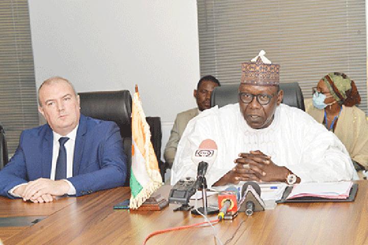 Africa-Press – Niger. Le ministre de l’Hydraulique et de l’Assainissement, M. Adamou Mahaman, et le président de la zone Afrique et Moyen-Orient de Veolia, M. Philippe Bourdeaux, en visite de travail au Niger, ont conjointement animé, le jeudi 31 mars dernier, dans la salle de réunions du Ministère, une conférence de presse, pour échanger sur le partenariat entre le Niger et la société Veolia, en charge de l’exploitation de l’eau au Niger. Il a été aussi question d’évaluer les avancées enregistrées par la société Veolia, avant le renouvellement des contrats d’affermage pour la Société d’Exploitation des Eaux du Niger (SEEN) avec le Gouvernement nigérien ainsi que pour envisager les perspectives dans le cadre de ce partenariat, qui date de 20 ans.