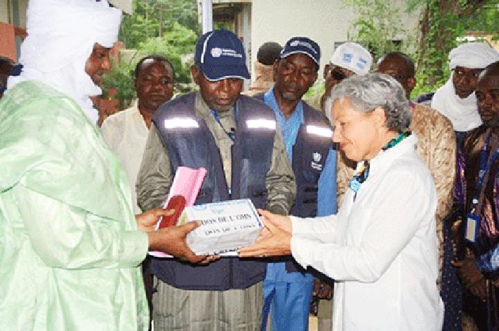 Mme Louise Aubin a aussi souligné que, le Système des Nations Unies s’est engagé à soutenir ce retour volontaire et sécurisé des populations déplacées. C’est ainsi, qu’en fonction de leur domaine, les Agences des Nations-Unies ont travaillé avec les Ministères Sectoriels concernés pour identifier collégialement les actions spécifiques à mener eu égard aux ressources disponibles et celles à mobiliser. A la suite de ces travaux préalables a-t-elle poursuivi, « je suis aujourd’hui heureuse de remettre au Gouverneur de la Région de Diffa en présence du ministre de l’Action Humanitaire, les médicaments divers, les consommables et matériels de Bureau, acquis par l’Organisation Mondiale de la Santé (OMS) sur la base des besoins identifiés en collaboration avec la Direction Régionale de la Santé Publique (DRSP) de Diffa sur financement du Fonds Central d’Intervention d’Urgence (CERF) des Nations Unies et de l’Union Européenne », a indiqué Mme Louise Aubin. La Coordinatrice Humanitaire a enfin noté qu’il s’agit des médicaments essentiels génériques, y compris les consommables médicaux ainsi que du matériel et équipements rendant fonctionnelle et de façon normative une formation sanitaire de premier niveau.