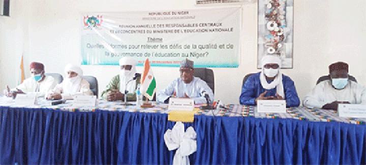 Africa-Press – Niger. Au terme de 4 jours de travaux, la 1ère réunion annuelle des responsables des structures centrales et déconcentrées du Ministère de l’Education Nationale a pris fin le jeudi dernier. La cérémonie de clôture a été présidée par le ministre de l’Education nationale Dr. Rabiou Ousman en présence du gouverneur de la région de Dosso M. Albachir Aboubacar, du président du Conseil régional, des autorités administratives et de nombreux invités. La fin des travaux de cette réunion a été sanctionnée par d’importantes recommandations et plusieurs motions de soutien.