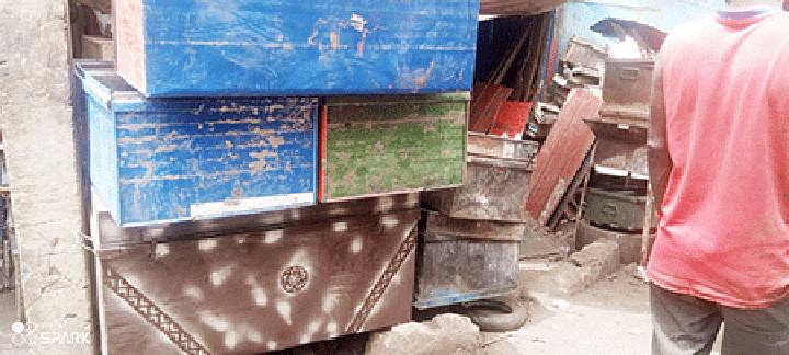 Aujourd’hui avec l’expérience, Il arrive à fabriquer 10 caisses par jour, bien sûr en fonction de la commande. Selon ses explications, « les caisses sont faites à base de vieux tonneaux métalliques qui nous viennent la plupart du temps des pays voisins.