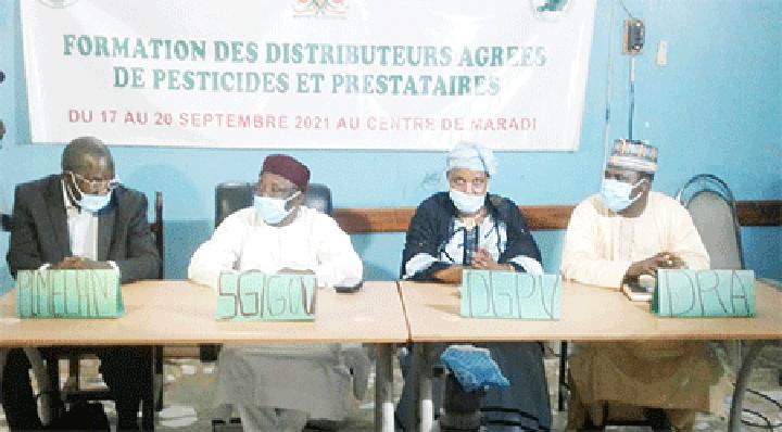 Africa-Press – Niger. Le Secrétaire général du Gouvernorat de Maradi, M. Soumana Karimou a présidé le vendredi 17 septembre 2021, la cérémonie d’ouverture de la formation des distributeurs agréés de pesticides et prestataires. Cette session de formation est financé par le Projet de Modernisation de l’Elevage et de l’Agriculture au Niger (PIMELAN) et exécutée par la Direction Générale de Protection des Végétaux (DGPV).