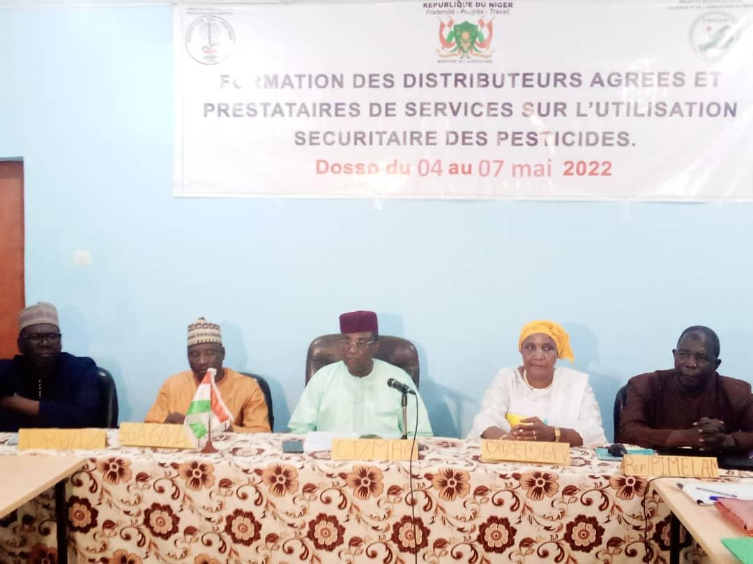 Cette cérémonie s’est déroulée en présence du secrétaire général adjoint du gouvernorat de Dosso M. Azizou Halidou, du représentant du PIMELAN M. Djibo Seyni, de la directrice de la règlementation phytosanitaire et du suivi environnemental à la direction générale de la protection des végétaux, des cadres centraux et régionaux du ministère de l’agriculture et des distributeurs agréés de pesticides.