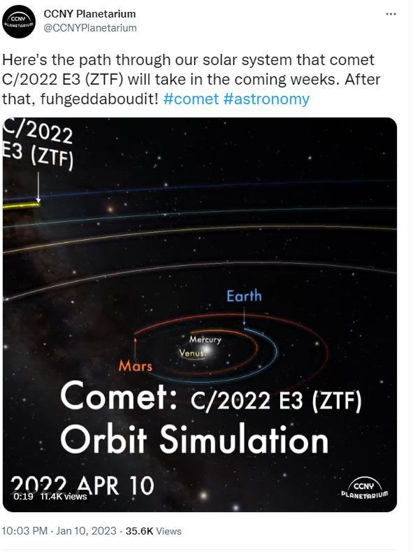 Africa-Press – Niger. The “green » Comet C/2022 E3 (ZTF) was discovered by astronomers at the Zwicky Transient Facility in early March 2022, and estimated that it will make its closest approach to Earth on February 2, coming within 26.4 million miles (42.4 million km) of our planet.