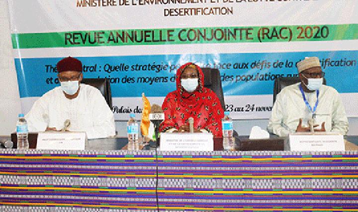 Africa-Press – Niger. La ministre de l’Environnement et de la Lutte contre la Désertification, Mme Garama Saratou Rabiou Inoussa, a présidé, le mardi 23 novembre 2021, l’ouverture des travaux de la revue annuelle conjointe 2020 du secteur de l’environnement. Placé sous le thème central : « Quelle stratégie pour faire face aux défis de la désertification et de la dégradation des moyens d’existence des populations rurales », cet atelier a pour but de mobiliser toutes les énergies et contributions, en vue d’apporter des réponses appropriées et durables aux problèmes de dégradation des terres.