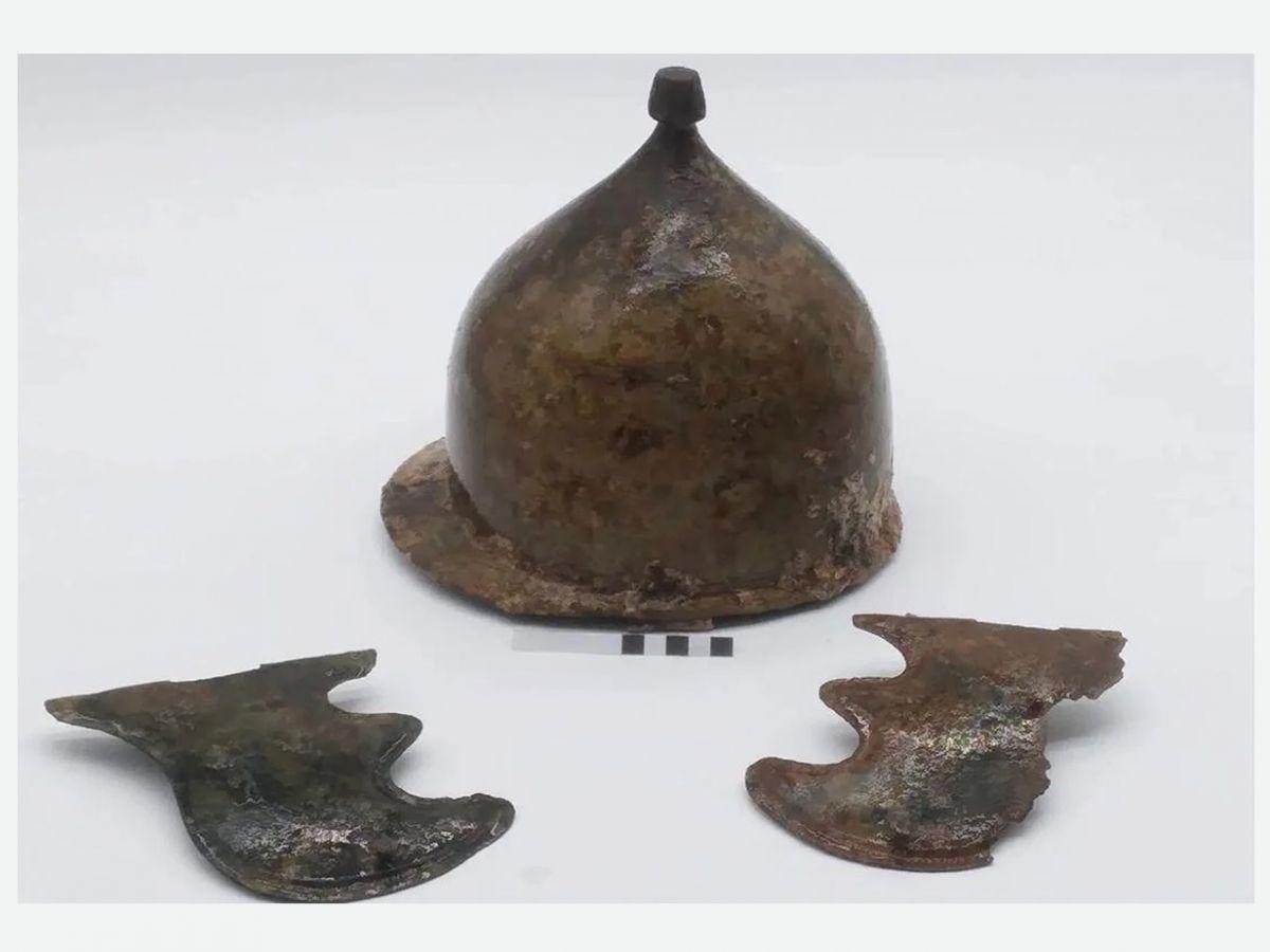 La campagne de cette année a tout d’abord livré un casque de type Montefortino. Si ce n’est pas le premier à avoir été extrait de l’eau, son excellent état le distingue, d’autant qu’il est muni des deux protège-joues qui le complètent. Selon le conseiller régional chargé du patrimoine culturel et de l’identité siciliennes, Francesco Paolo Scarpinato, c’est « l’un des plus beaux et des plus complets jamais retrouvés », rapporte un communiqué de la Région Sicile.