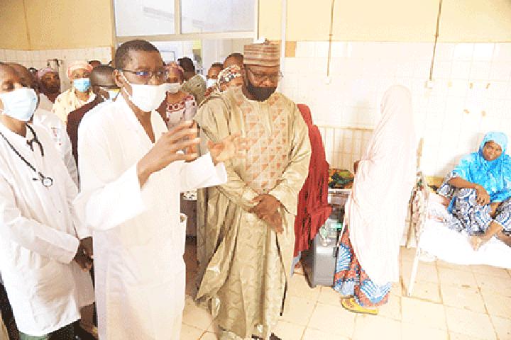 Africa-Press – Niger. Le ministre de la Santé publique, de la Population et des Affaires sociales, M. Illiassou Idi Maïnassara a effectué, le vendredi 29 avril dernier, des visites dans les centres hospitaliers de référence de Niamey. C’est ainsi qu’il s’est rendu successivement à l’Hôpital National de Niamey, à l’Hôpital National Amirou Boubacar Diallo de Lamordé et à l’Hôpital Poudrière. Il s’agit, à travers ces visites, de s’enquérir des conditions de prise en charge des malades, d’encourager les agents de santé et surtout de s’assurer de l’effectivité de la gratuité de soins pour les enfants souffrant de paludisme et la disponibilité des produits de traitement. Le ministre était accompagné par les cadres de son département ministériel dont la Coordinatrice du Programme National de Lutte contre le Paludisme (PNLP), Mme Djermakoye Hadiza Jackou.