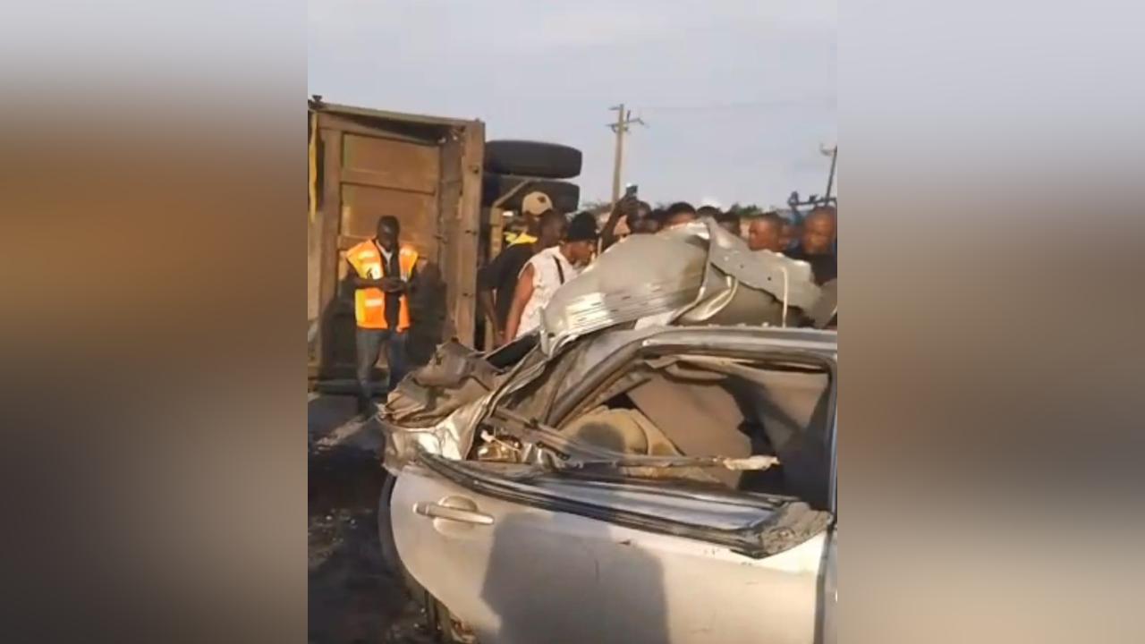 Africa-Press – Nigeria. A male motorist has lost his life, while his wife sustained critical injuries following a fatal road traffic accident involving a granite-laden articulated truck and a Toyota saloon car at Eleko Junction along the Lekki–Ajah Expressway in Lagos State.