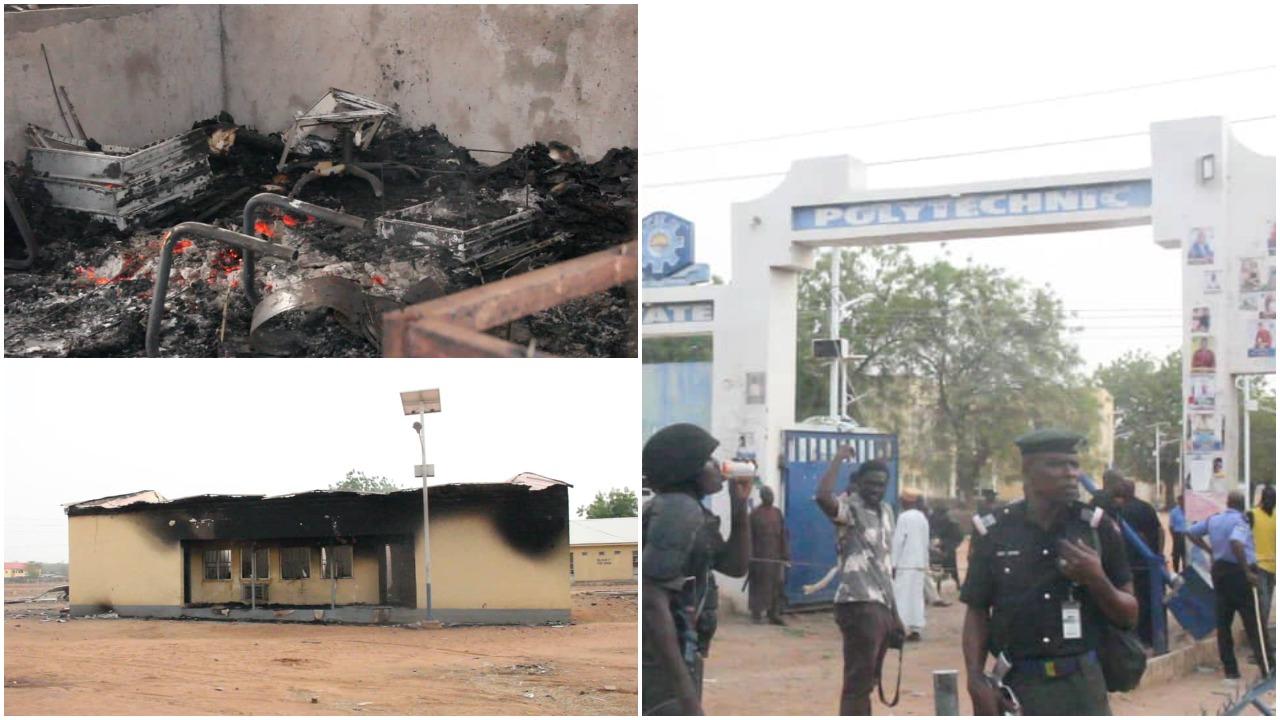 Rector of the polytechnic, Professor Ibrahim Umar, who spoke to newsmen late on Thursday, specified that the final year students destroyed a 500-seat multipurpose lecture theatre, Students’ Union Government building and a male hostel during the “unprovoked riot” sparked by revelry and celebration by outgoing students.