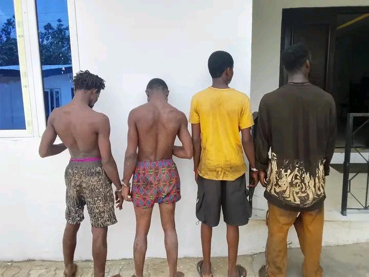The four suspects were nabbed by the Amuzukwu Vigilante group in Umuahia while they were actively removing the roof of Amuzukwu Primary School.